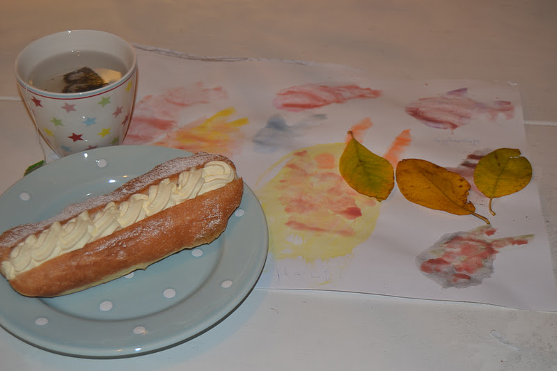 Sain opiskelujeni päättötyön ja näytöt valmiiksi ja juhlimme sitä miehen tuomin kermapullin ja tytteli oli askarrellut minulle kortin syksyn lehdistä :)